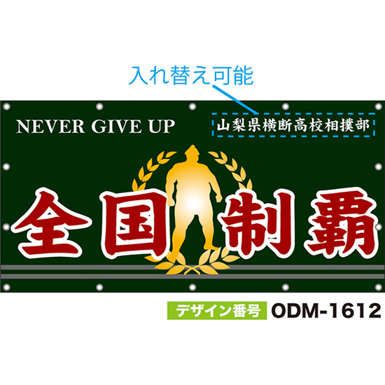 【別注】名入れ応援幕(横型) 全国制覇 NEVER GIVE UP (緑) ODM-1611【受注生産】
