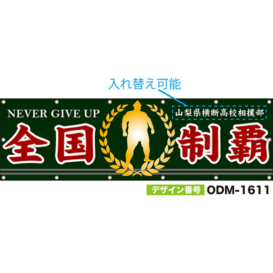 【別注】名入れ応援幕(四角型) 全国制覇 NEVER GIVE UP (緑) ODM-1612【受注生産】