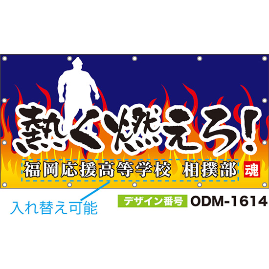 【別注】名入れ応援幕(横型) 熱く燃えろ! (青) ODM-1613【受注生産】