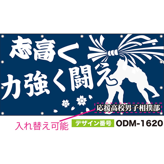 【別注】名入れ応援幕(横型) 志高く力強く闘え (紺) ODM-1619【受注生産】