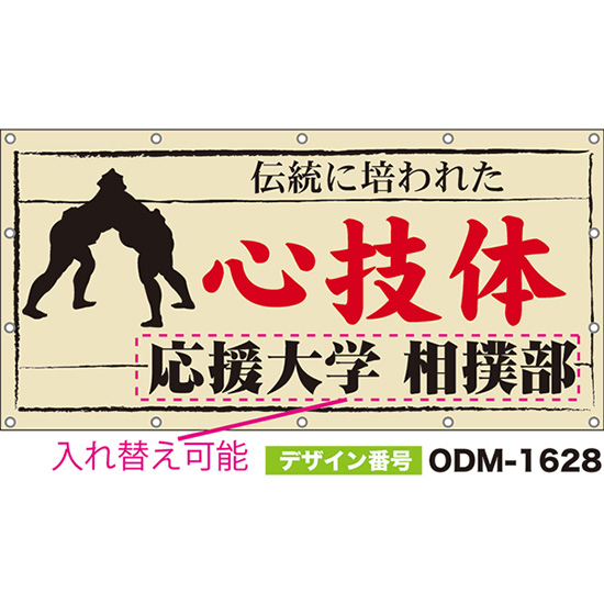 【別注】名入れ応援幕(横型) 心技体 伝統に培われた (ベージュ) ODM-1627【受注生産】