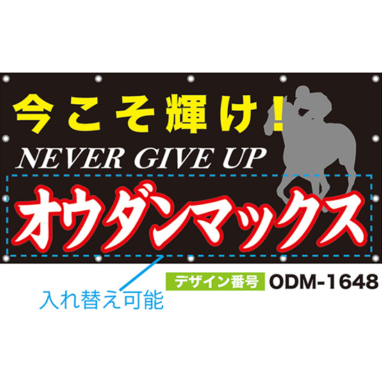 【別注】名入れ応援幕(横型) 今こそ輝け! NEVER GIVE UP (黒) ODM-1647【受注生産】
