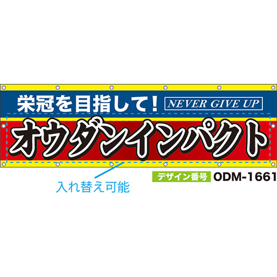 【別注】名入れ応援幕(四角型) 栄冠を目指して! NEVER GIVE UP (赤・青) ODM-1662【受注生産】