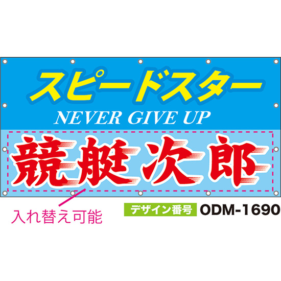 【別注】名入れ応援幕(横型) スピードスター NEVER GIVE UP (水色) ODM-1689【受注生産】