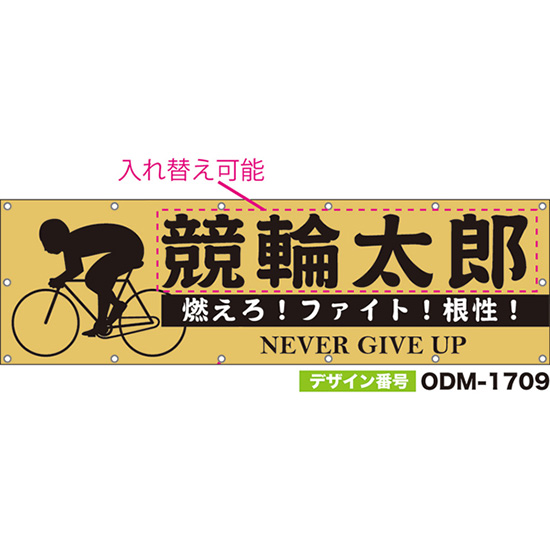 【別注】名入れ応援幕(四角型) 燃えろ!ファイト!根性! NEVER GIVE UP (ベージュ) ODM-1710【受注生産】