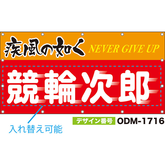 【別注】名入れ応援幕(横型) 疾風の如く NEVER GIVE UP (赤・橙) ODM-1715【受注生産】