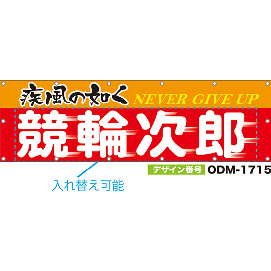 【別注】名入れ応援幕(四角型) 疾風の如く NEVER GIVE UP (赤・橙) ODM-1716【受注生産】