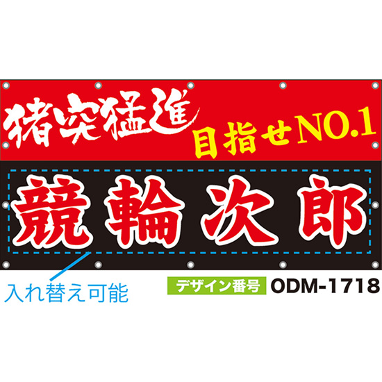 【別注】名入れ応援幕(横型) 猪突猛進 目指せNO.1 (赤・黒) ODM-1717【受注生産】