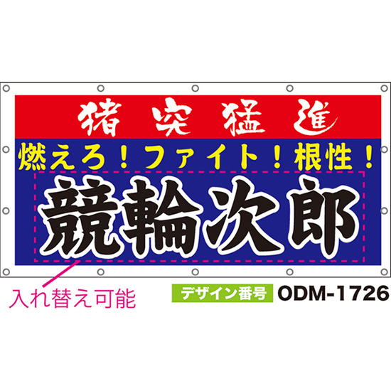 【別注】名入れ応援幕(横型) 猪突猛進 燃えろ!ファイト!根性! (青) ODM-1725【受注生産】