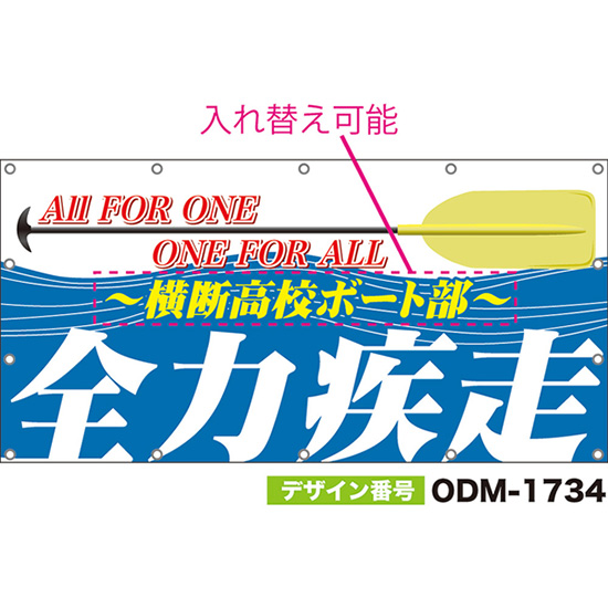 【別注】名入れ応援幕(横型) 全力疾走 ALL FOR ONE ONE FOR ALL (青) ODM-1733【受注生産】