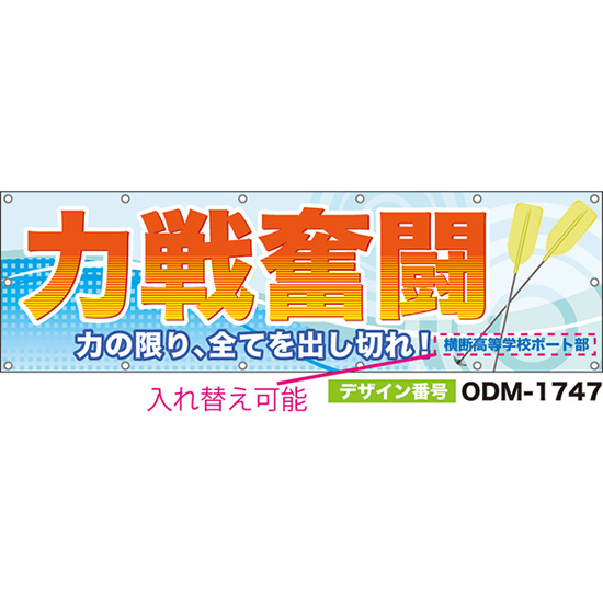 【別注】名入れ応援幕(四角型) 力戦奮闘 力の限り、全てを出し切れ! (水色) ODM-1748【受注生産】