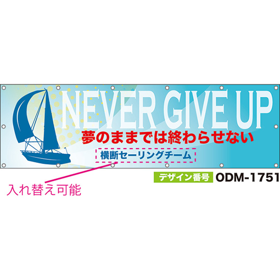 【別注】名入れ応援幕(四角型) NEVER GIVE UP 夢のままでは終わらせない (水色) ODM-1752【受注生産】