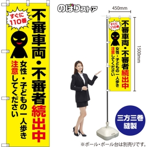 のぼり旗 不審者に注意 夜間の外出には十分注意してください (青枠・水色) OKE-0055[小型サイズ]