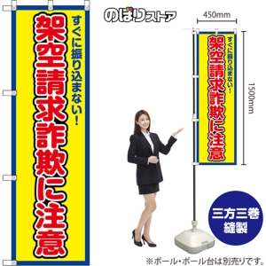 のぼり旗 振り込め詐欺に注意 確かめましたか?その電話 (青枠・水色) OKE-0070[小型サイズ]