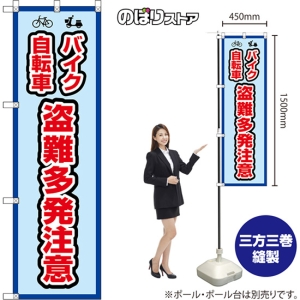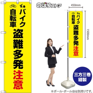 • のぼり旗 バイク自転車 盗難多発注意 (青枠・黄) OKE-0164[小型サイズ]
