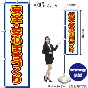 のぼり旗 安全・安心まちづくり (青枠・水色) OKE-0173[小型サイズ]