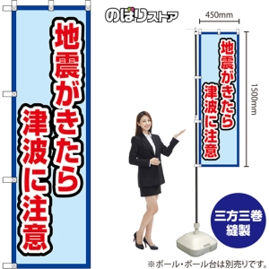 のぼり旗 地震がきたら津波に注意 (赤) OKE-0260[小型サイズ]