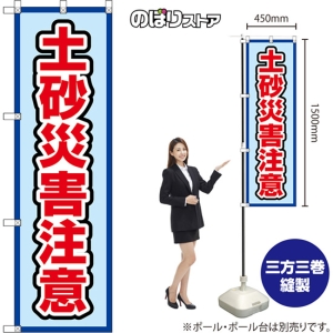 のぼり旗 土砂崩れ注意 (青枠・水色) OKE-0269[小型サイズ]