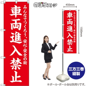 のぼり旗 車の通り抜け禁止 みんなでつくろう、安心・安全の街 (赤地白文字) OKE-0667[小型サイズ]