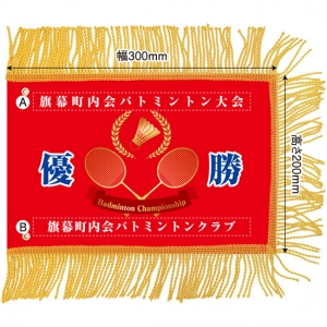 こちらの商品は縦300mm×横200mmのミニサイズです。フルカラープリント(片面印刷)で納期も早く、コスト重視のオリジナルミニ優勝旗です。