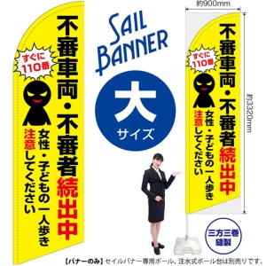 のぼり旗 不審者・ちかん注意 (枠 黄) セイルバナー (ミニサイズ) SB-1740