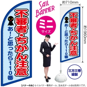のぼり旗 不審者警戒中 (黄) セイルバナー (小サイズ) SB-1790