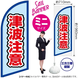 のぼり旗 津波注意 (黄) セイルバナー (ミニサイズ) SB-2346