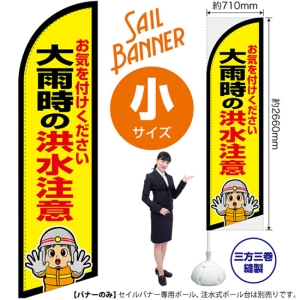 のぼり旗 大雨時の洪水注意 (消防士イラスト) セイルバナー (大サイズ) SB-2776
