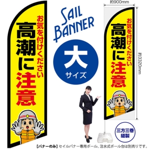 • のぼり旗 大雨時の洪水注意 (消防士イラスト) セイルバナー (大サイズ) SB-2776
