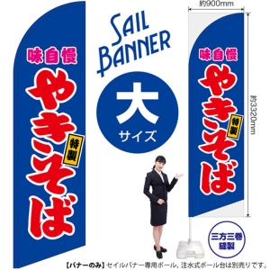 のぼり旗 やきそば 青 セイルバナー (小サイズ) SB-683