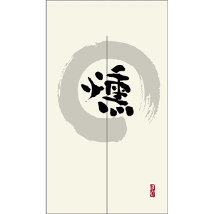 のれん 半間 暖簾 ピエゾ 和 漢字 円相図に筆文字 手書き からし色 TNR-0204