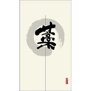 • のれん 半間 暖簾 ピエゾ 燻 漢字 円相図に筆文字 手書き 白色 TNR-0222