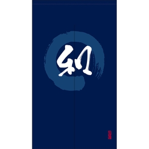 のれん 半間 暖簾 ピエゾ 燻 漢字 円相図に筆文字 手書き 紺色 TNR-0223