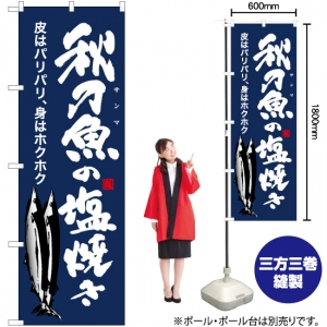 のぼり旗 秋刀魚の塩焼き (青) YN-6422
