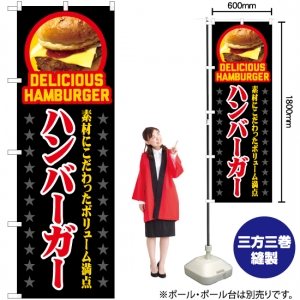• のぼり旗 ハンバーガー お持ち帰りできます (黒) YN-7541