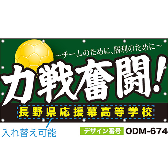 【別注】名入れ応援幕(横型) 力戦奮闘!チームのために、勝利のために (緑) ODM-0673【受注生産】